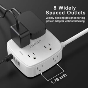 6 Ft Surge Protector Power Strip – 8 Widely Outlets with 4 USB Ports, 3 Side Outlet Extender with 6 Feet Extension Cord, Flat Plug, Wall Mount, Desk USB Charging Station, ETL,White