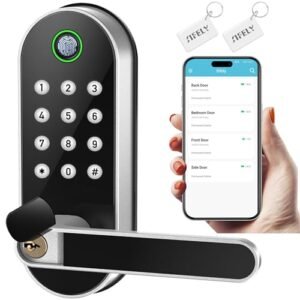Fingerprint Smart Door Lock with Handle & Keypad – No More Lost Keys, Keyless Entry & Remote Access for Home, Kids, Airbnb & Rental Property, DIY Install, Alexa & Google Compatible